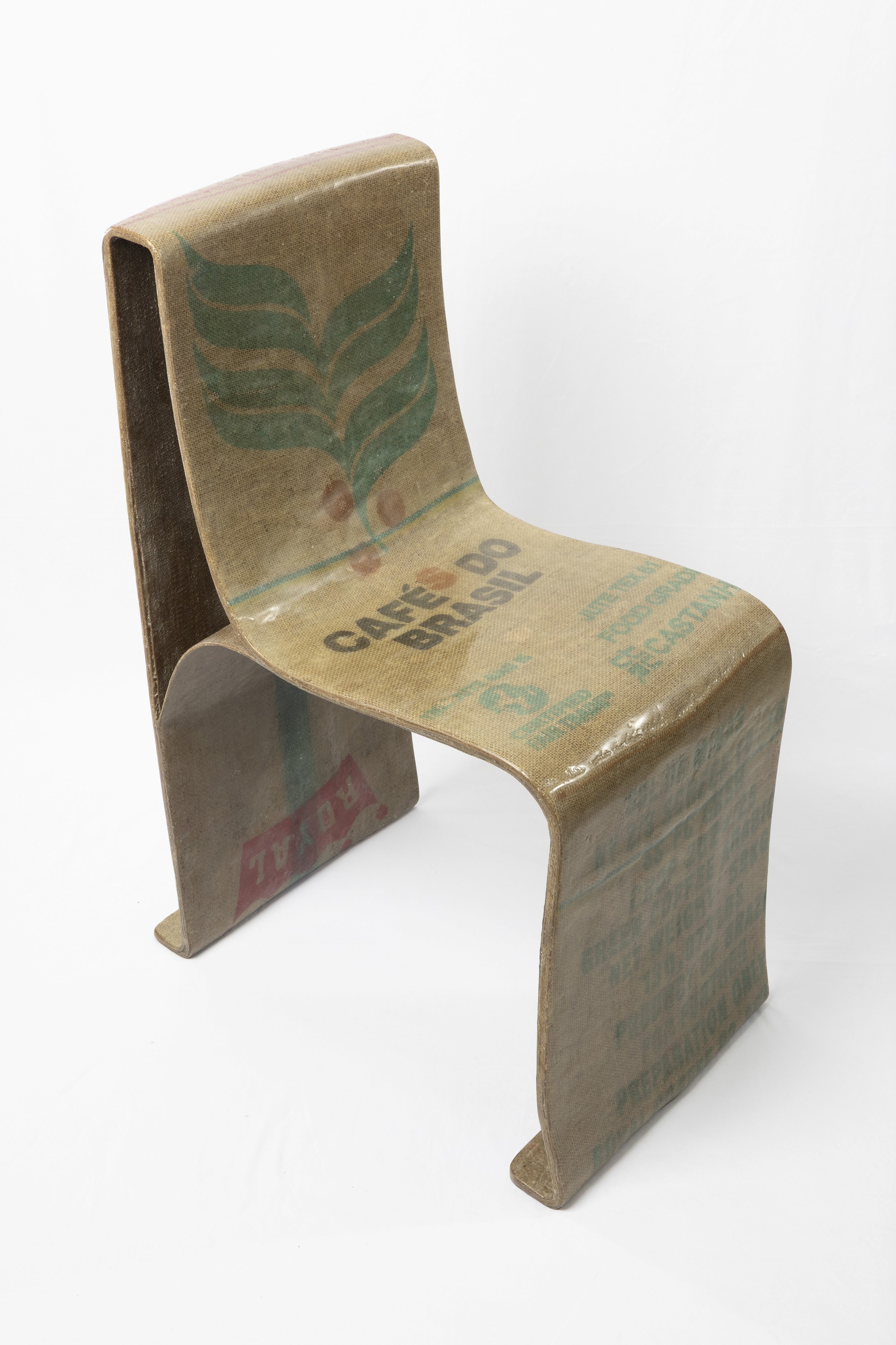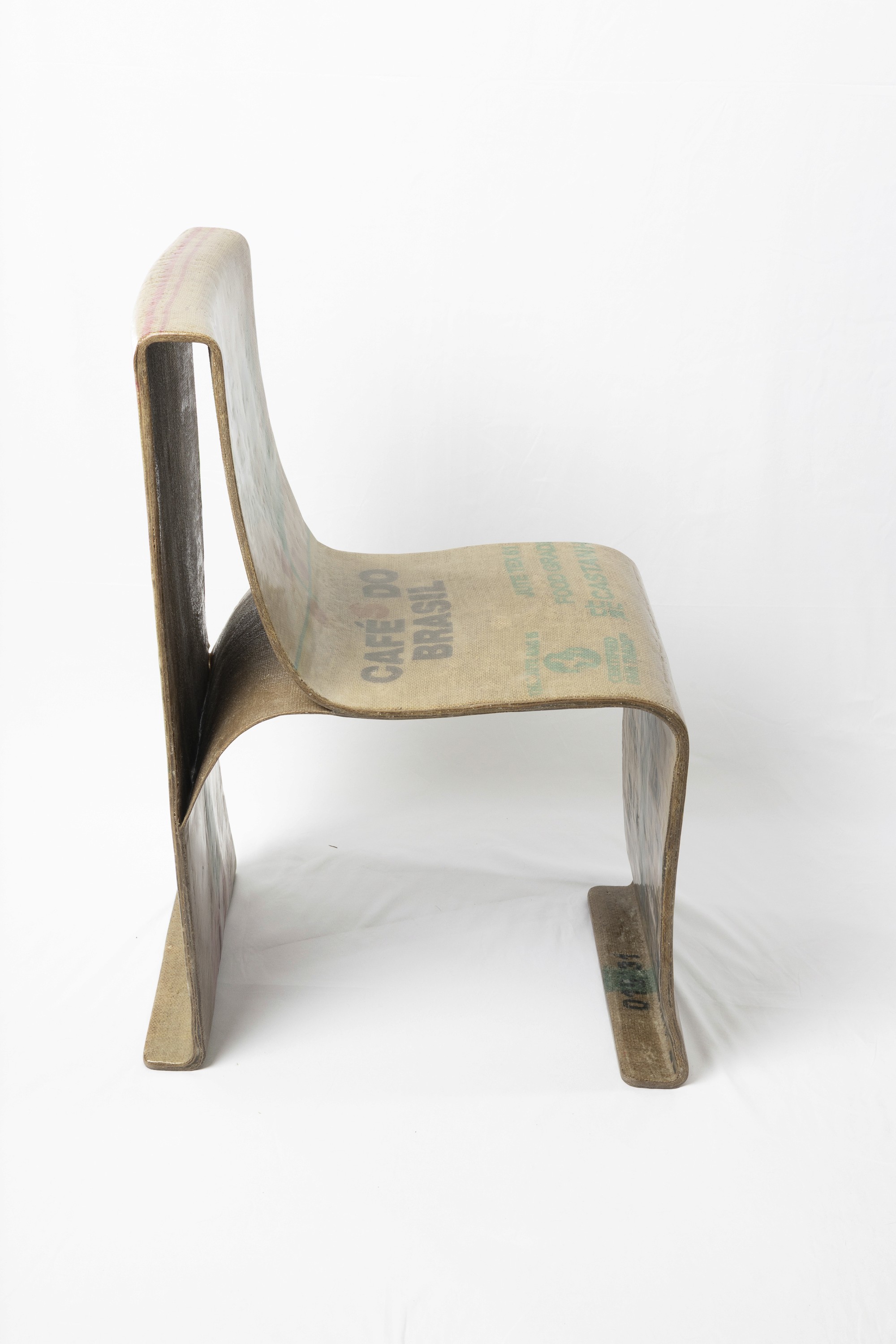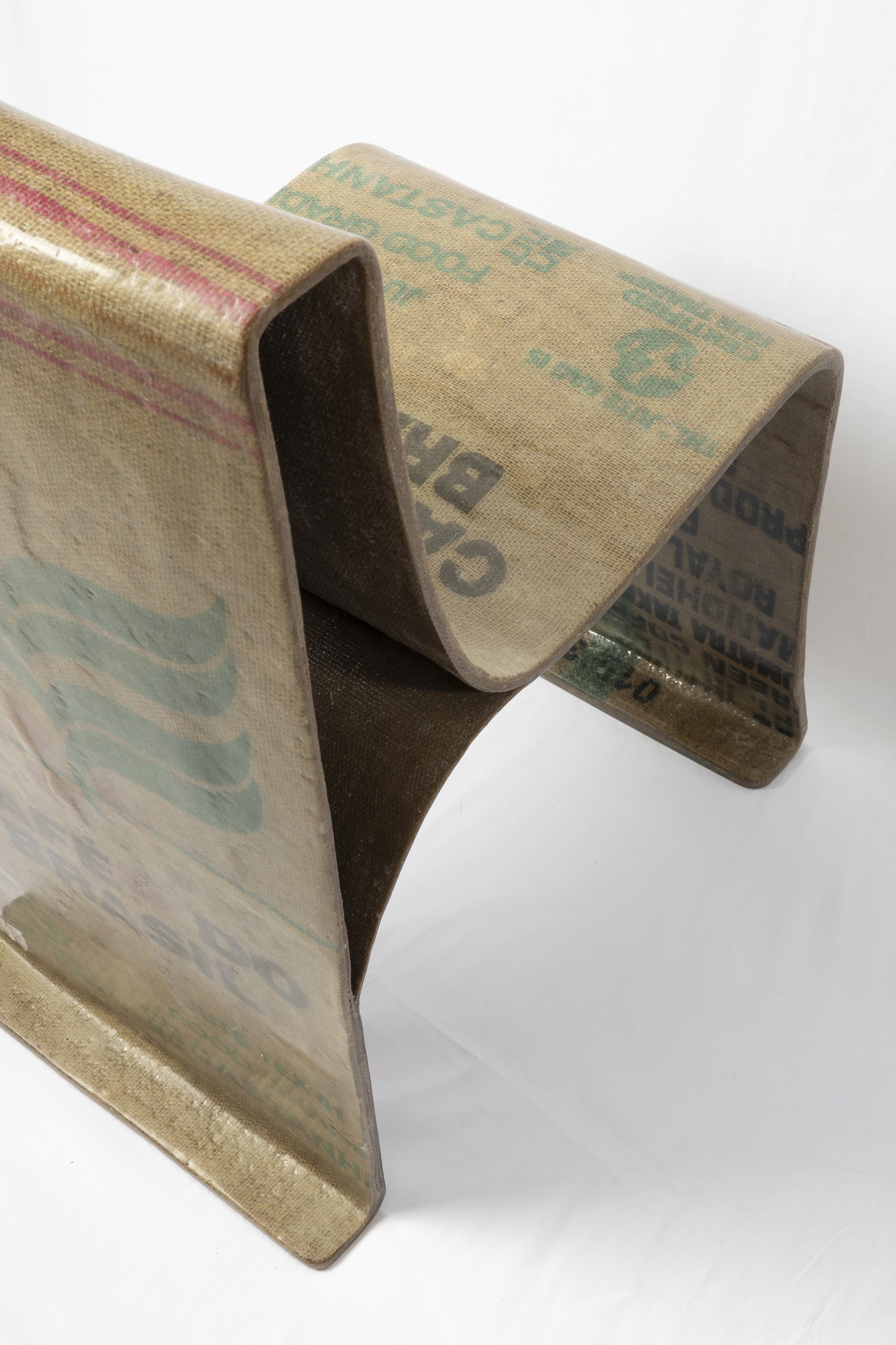 Made with natural woven fibers reinforced with Bio-based resin to create a structural composite material. The form was achieved by draping layers of resin saturated fabric over an articulated form.